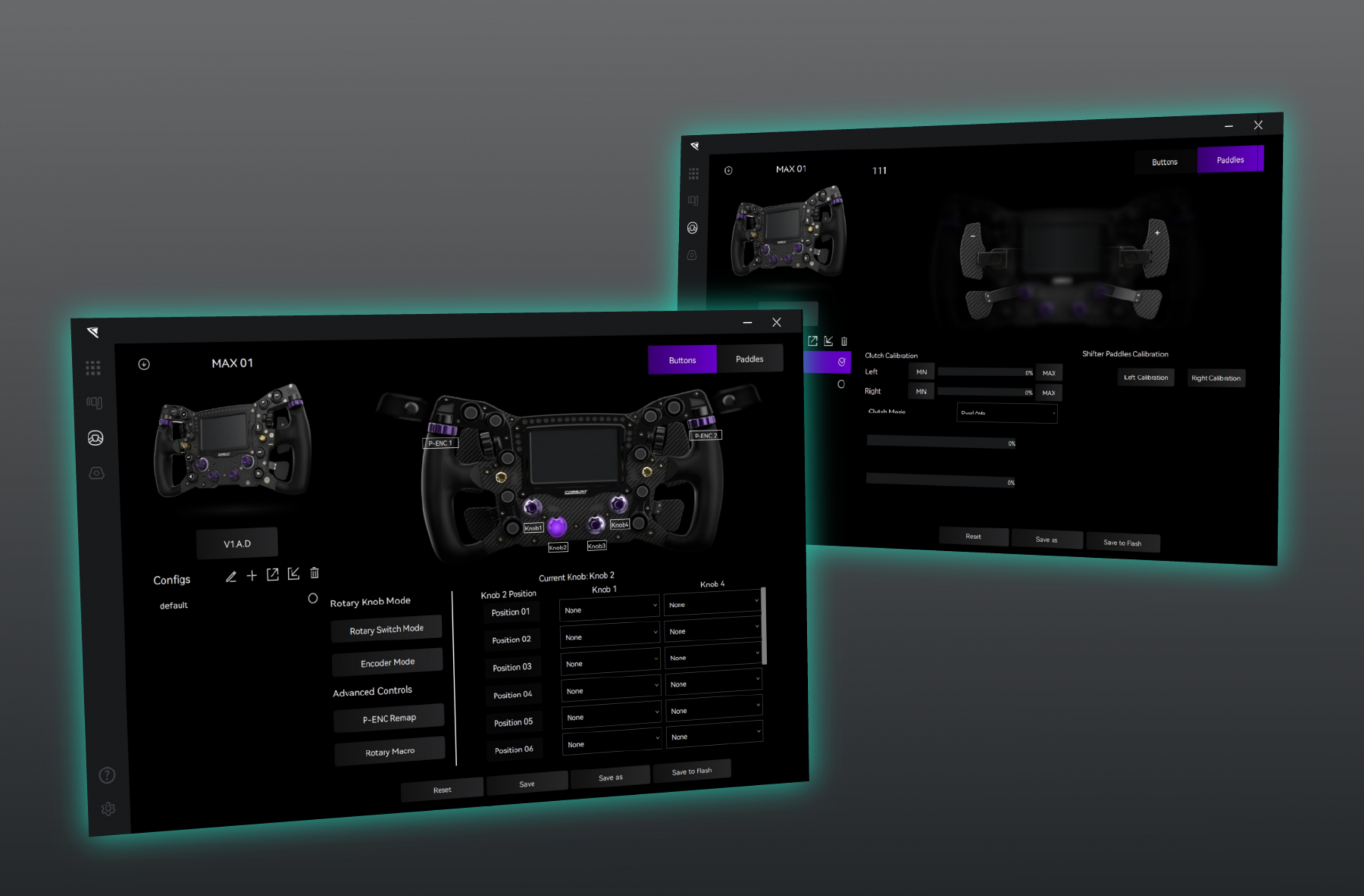 Crafted with a complete focus on competitive sim-driving, MAX 01 is equipped with CONSPIT’s proprietary advanced control features and offers 100% plug-and-play compatibility with SimHub, empowering drivers to unlock their highest racing potential.