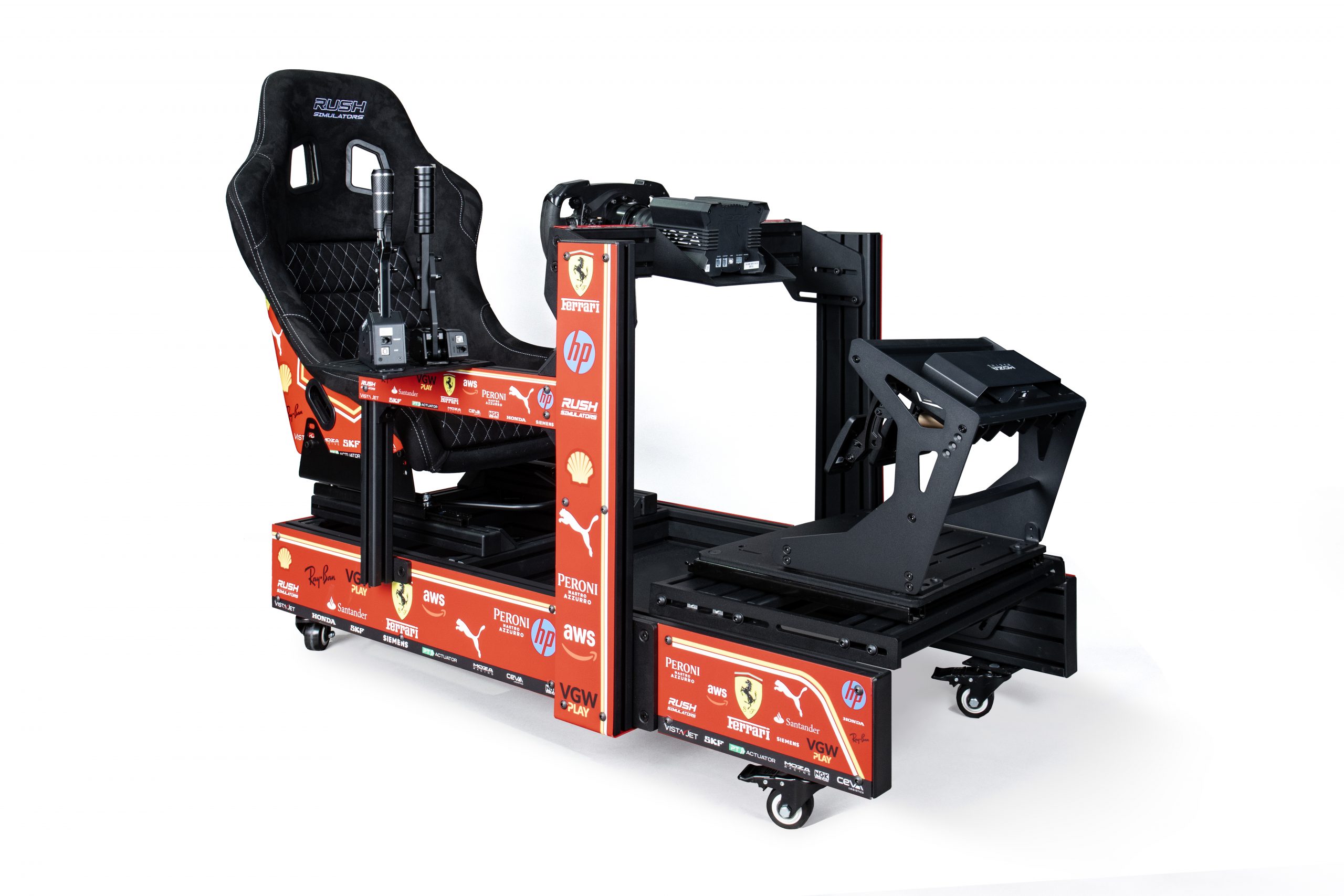 Experience the excitement of Ferrari racing with the Ferrari Edition Simulator Package. This complete setup includes a premium racing cockpit, high-performance wheelbase, steering wheel, and pedals for a fully immersive driving experience. Built for stability, comfort, and precision, it delivers everything you need to bring the thrill of Formula racing into your home.